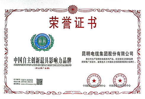 中國自主創(chuàng)新最具影響力品牌證書