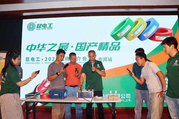現(xiàn)場,工作人員圍繞昆電工“中國第一根電纜誕生地”的歷史底蘊,介紹全品類線纜核心技術(shù),同步演示產(chǎn)品合格證防偽查詢方法,模擬極端用電情況開展過載實驗,并呼吁共同維護品牌權(quán)益。此外,還展示了官方商城小程序的操作流程與分銷功能。